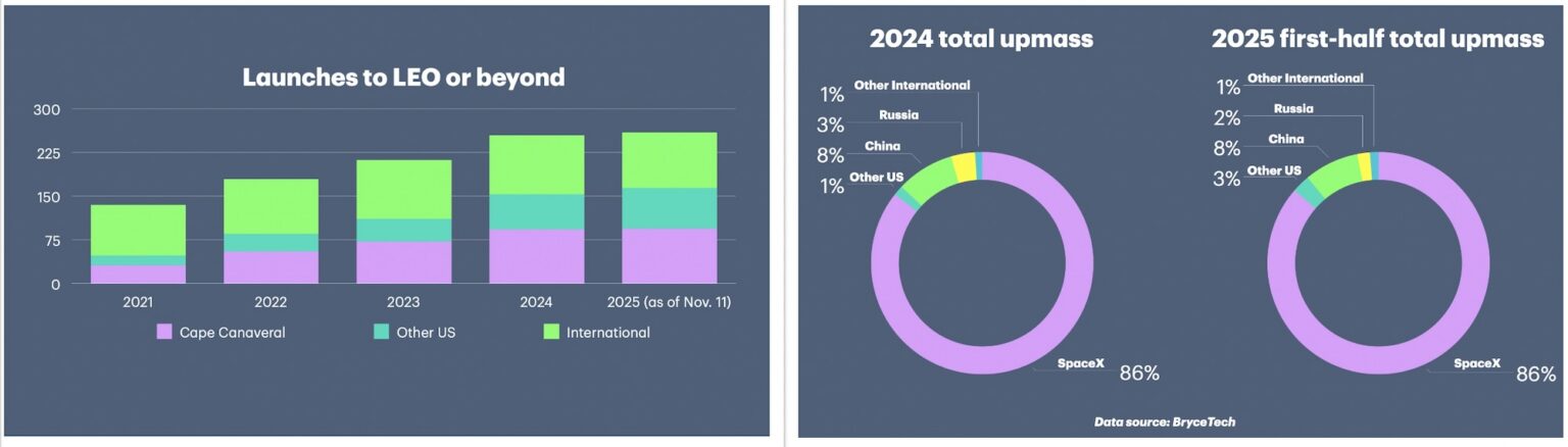 BryceTech. (2025). Global launch activity and payload mass analysis, January 2024–June 2025. [Data compilation cited in Ars Technica reporting]